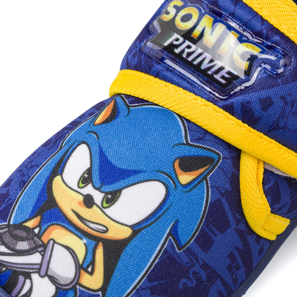 Le Scarpe Antiscivolo blu da bambino con Sonic sono perfette per i piccoli fan del famoso riccio! Con la loro divertente stampa e la comoda chiusura a strappo, i piedini dei più piccoli saranno sempre al sicuro e comodi. La suola è in materiale sintetico, assicurando una buona aderenza e resistenza. Un regalo perfetto per i fan di Sonic!